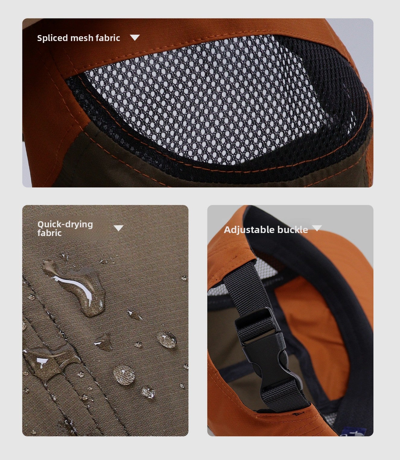 This mesh baseball cap is a fresh pick for spring-summer outdoor use: quick-dry fabric + side mesh panels for breathability (no stuffy sweat);5-panel shape + flat brim for face-flattering and sun protection;color-block design + outdoor logo embroidery balances practicality and style;unisex, perfect for camping or commutes –lightweight and cool.